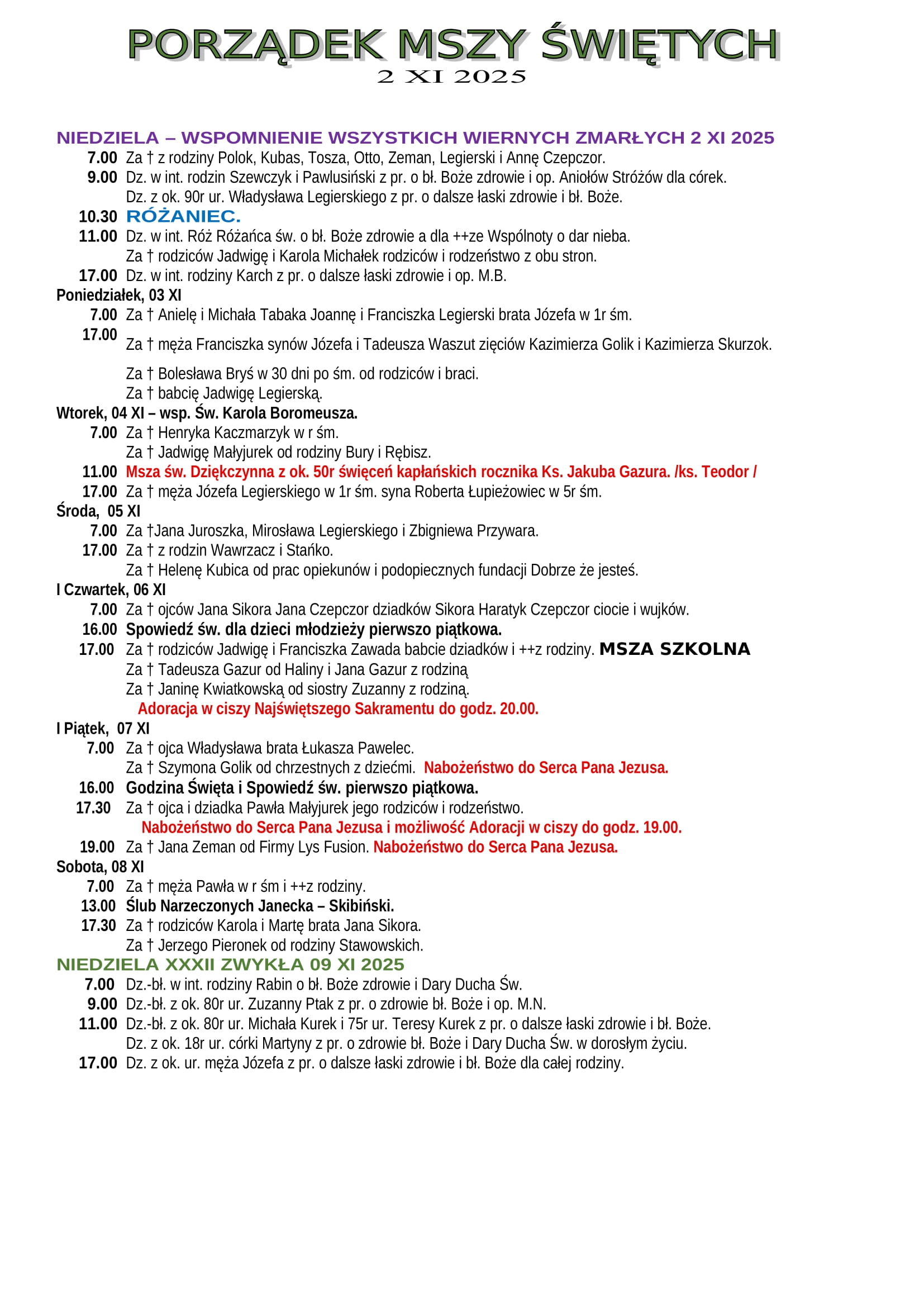 Intencje Mszalne 02.11.2025