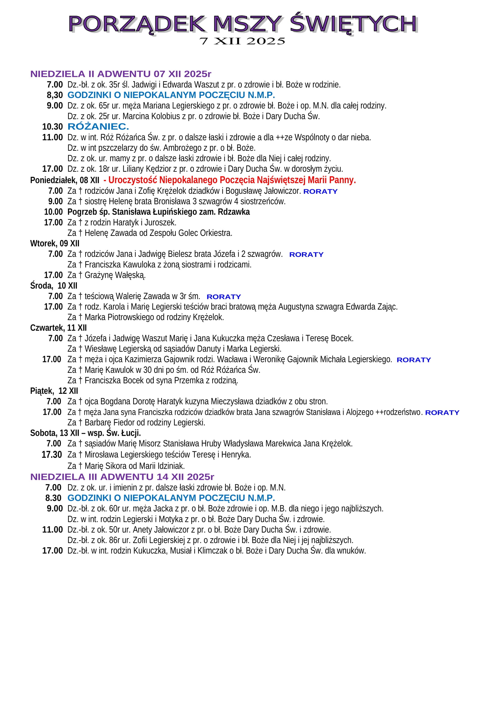 Intencje Mszalne 07.12.2025