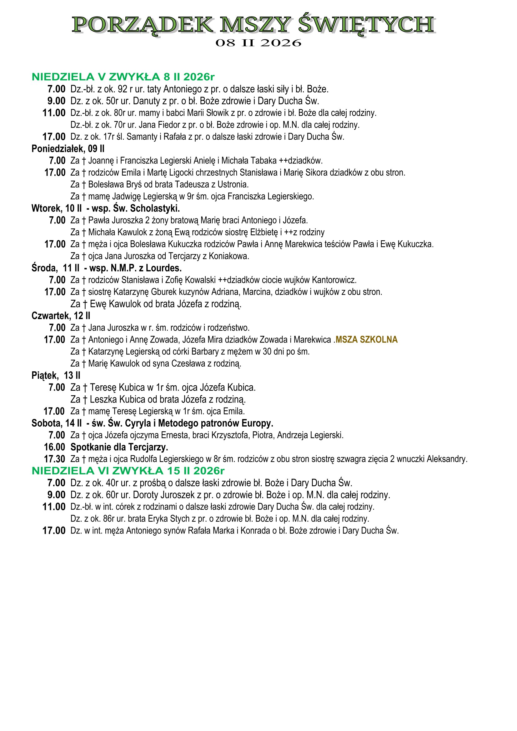 Intencje Mszalne 08.02.2026