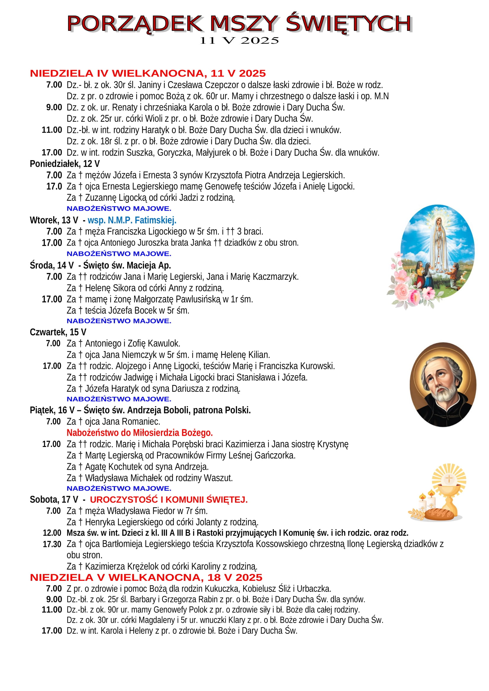 Intencje Mszalne 11.05.2025