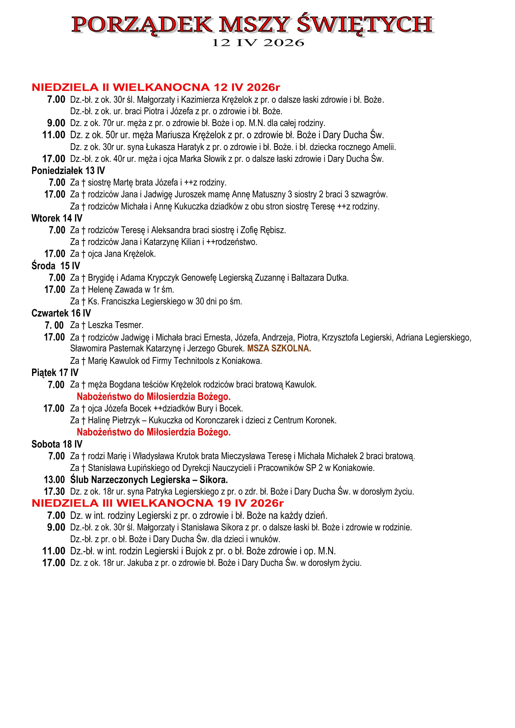 Intencje Mszalne 12.04.2026