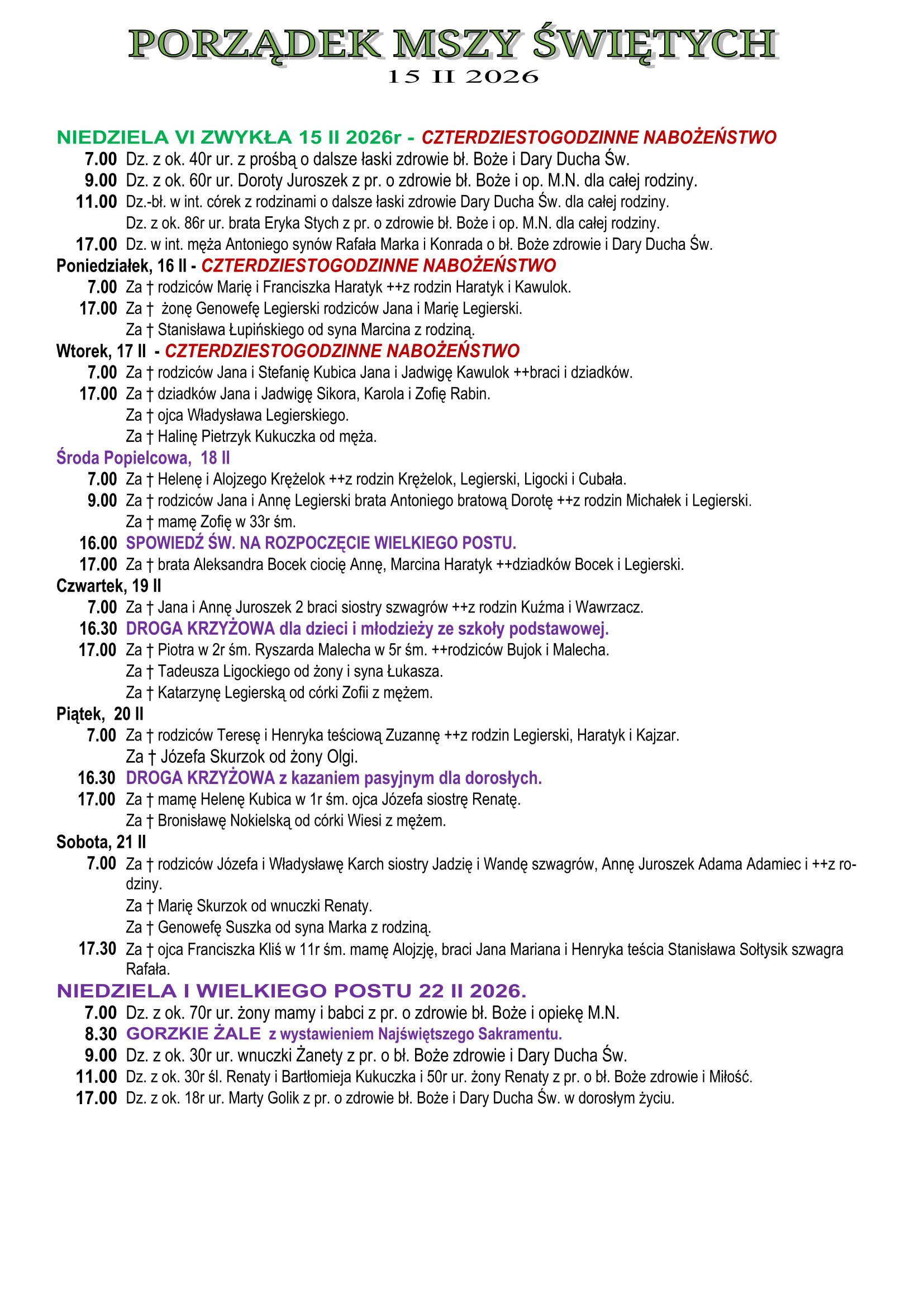 Intencje Mszalne 15.02.2026