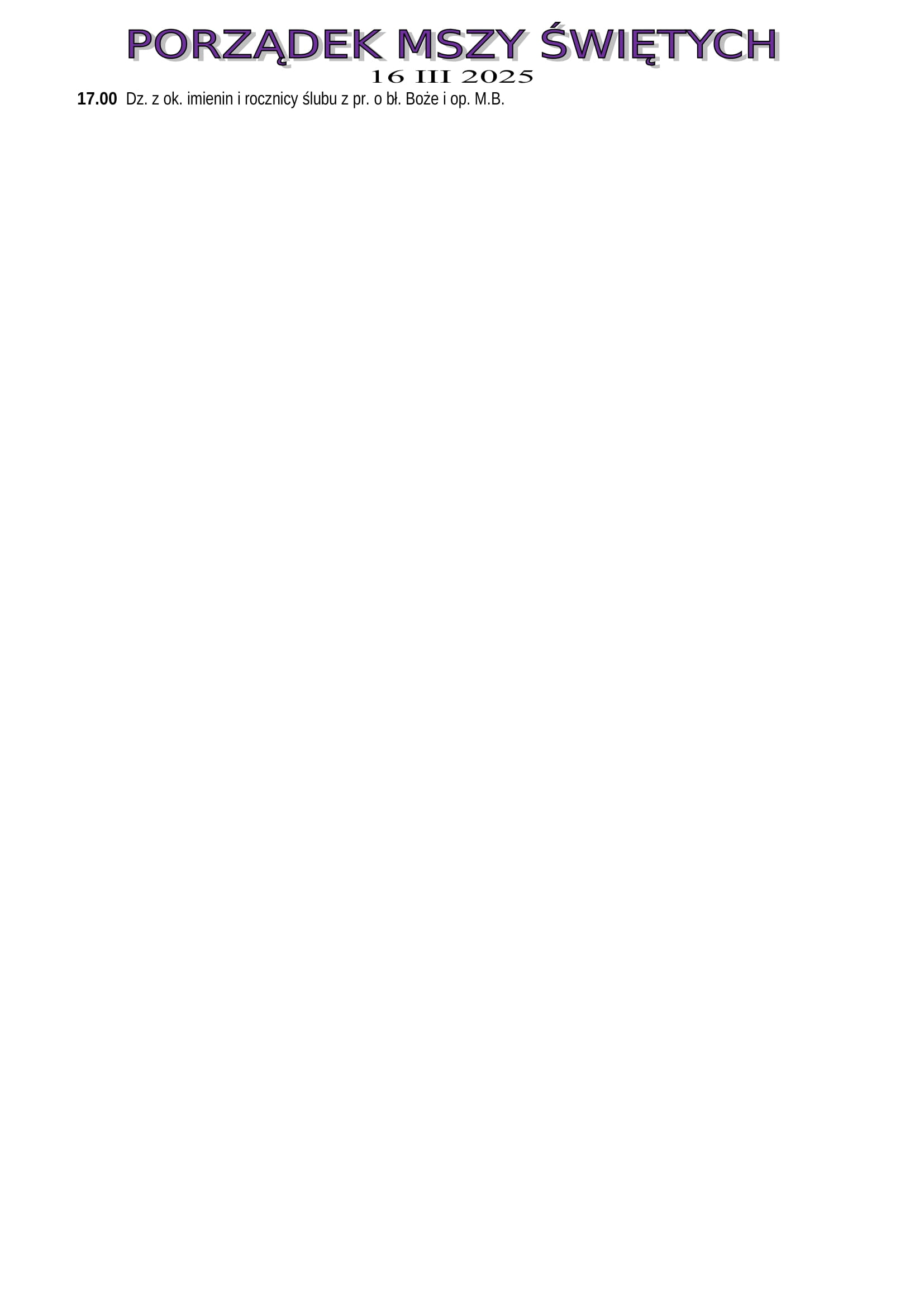 Intencje Mszalne 16.03.2025