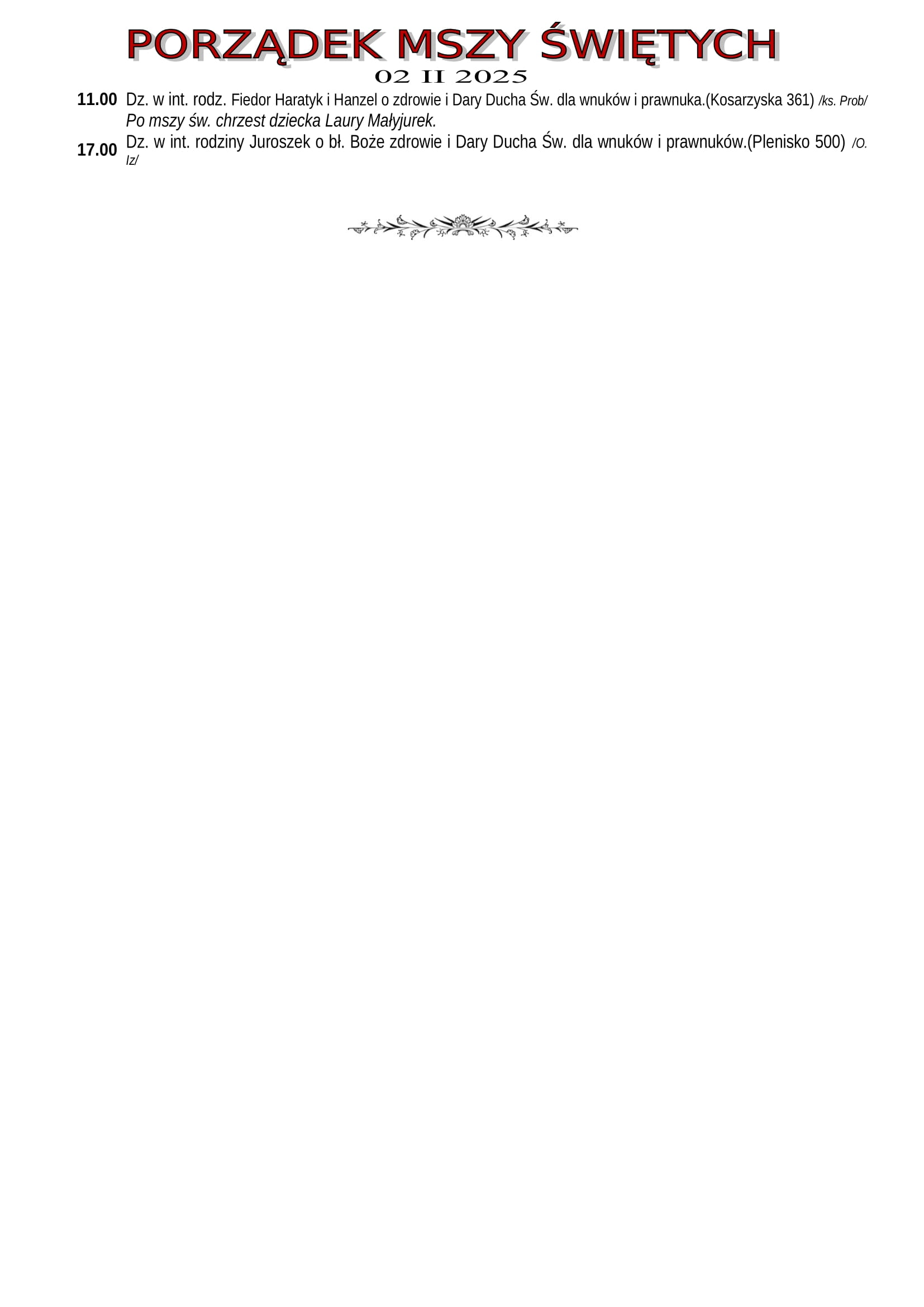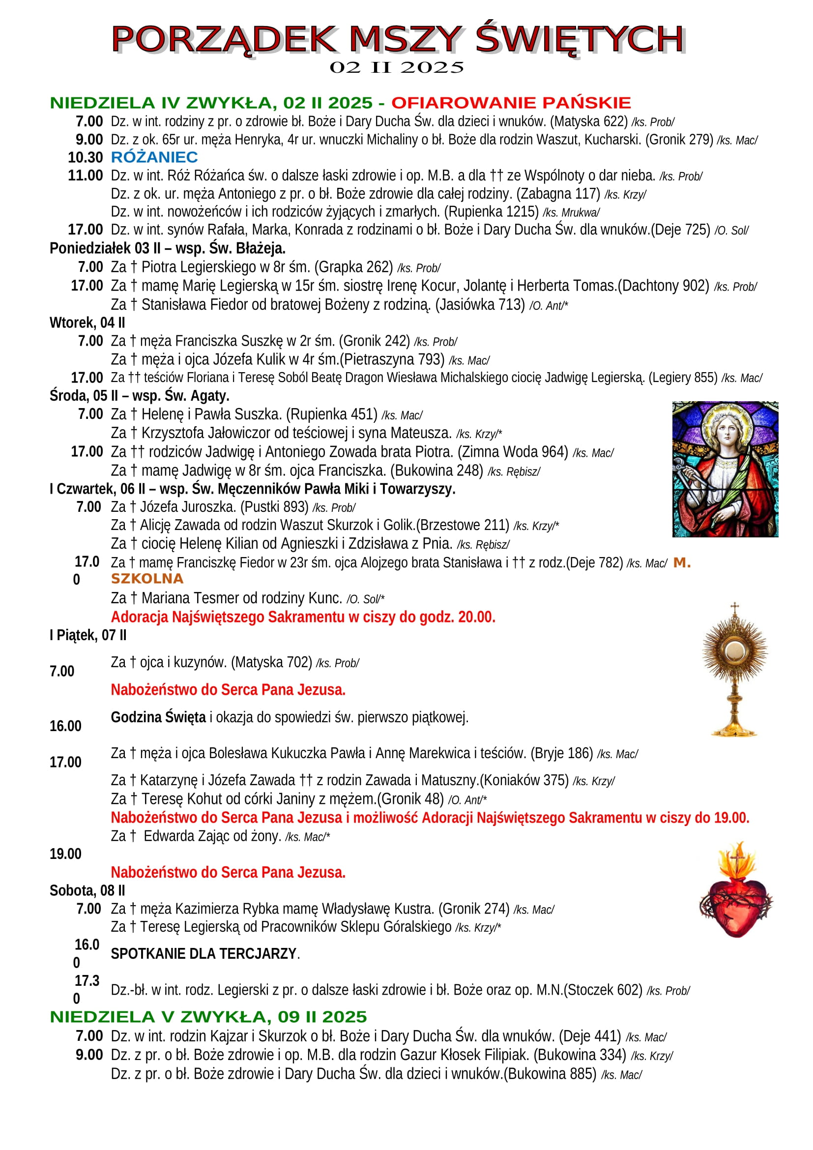 Intencje Mszalne 2.02.2025