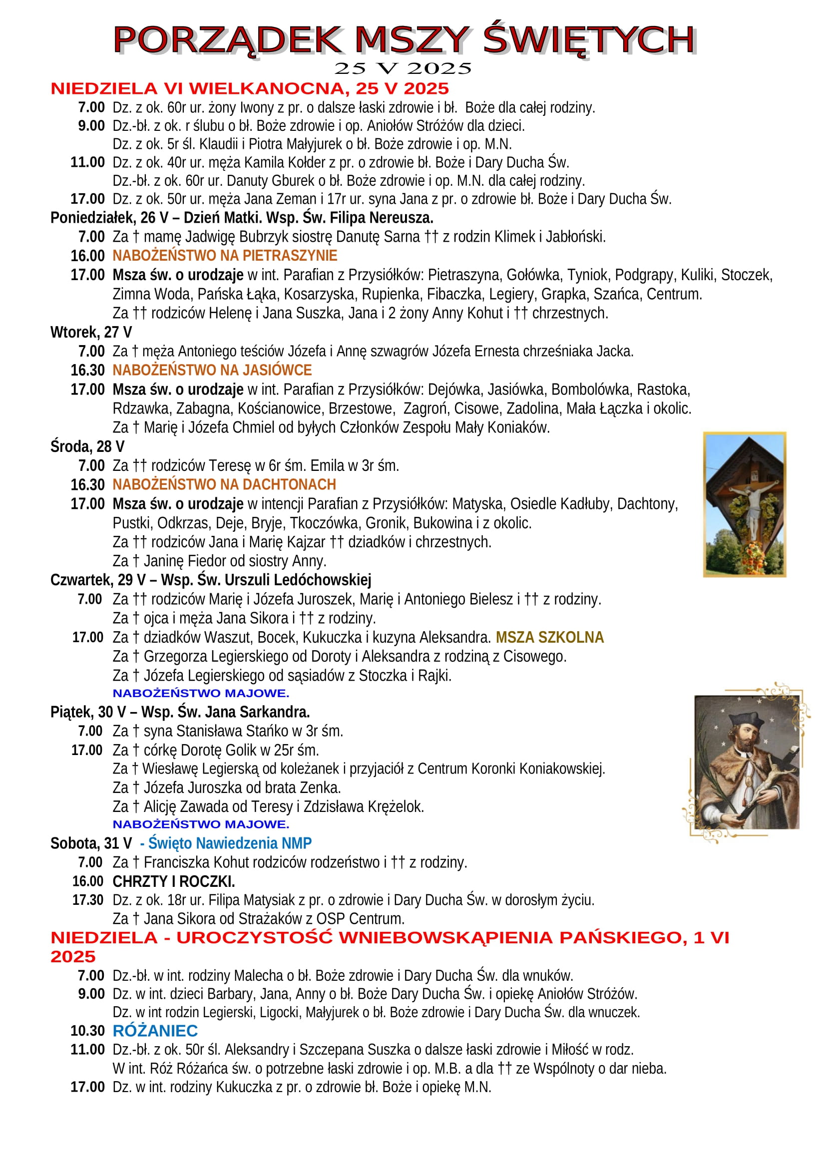 Intencje Mszalne 25.05.2025