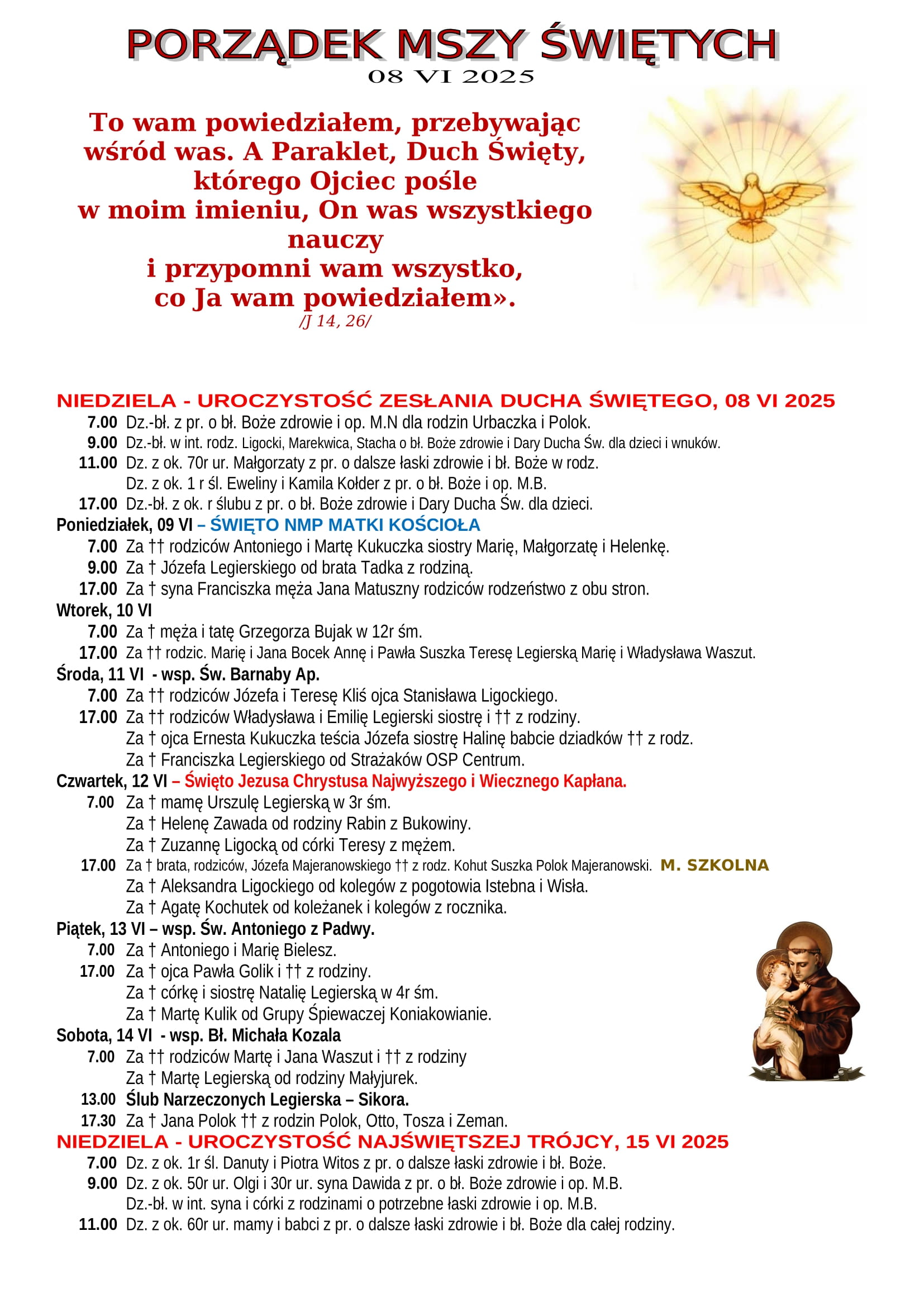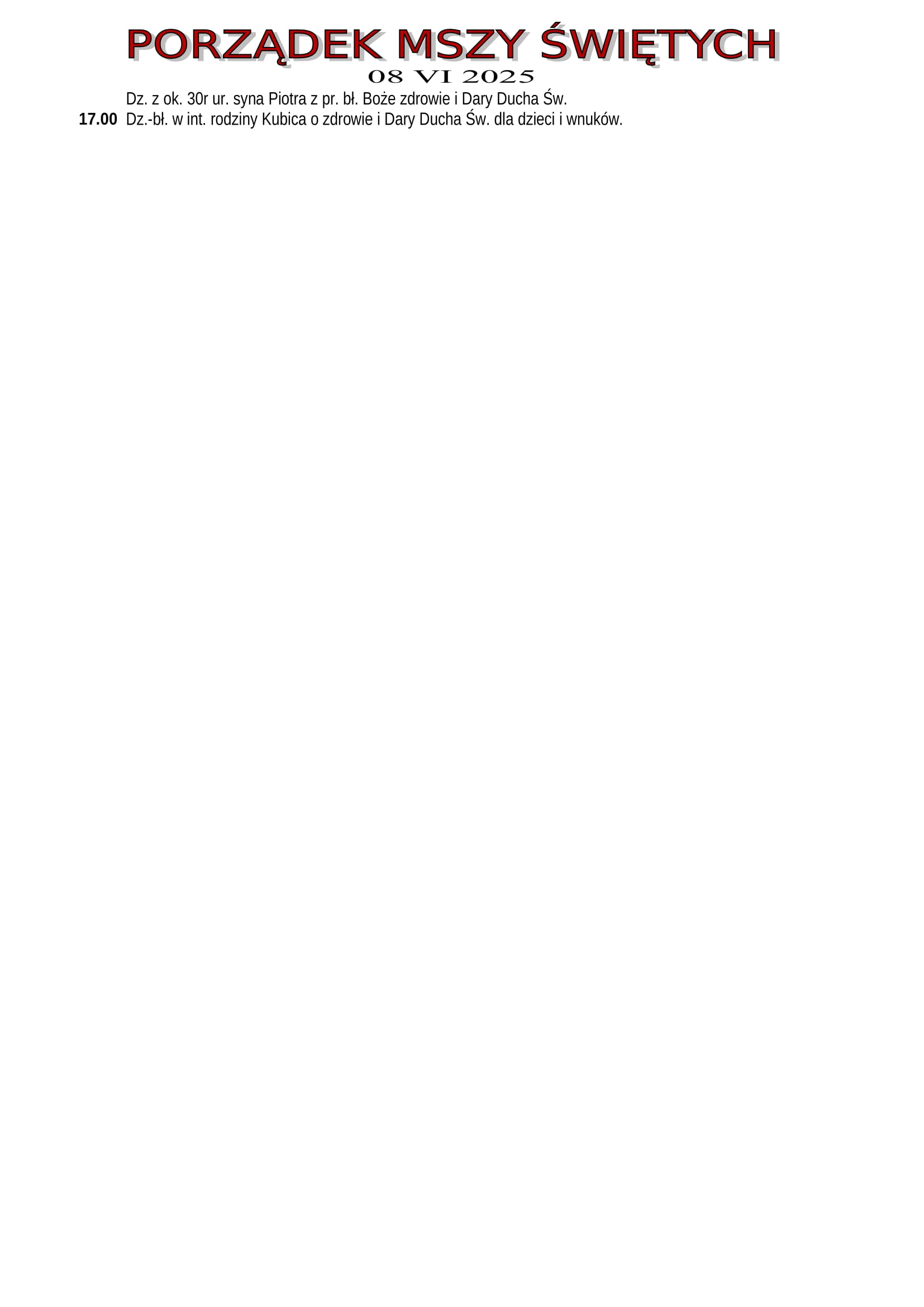 Intencje Mszalne 8.06.2025
