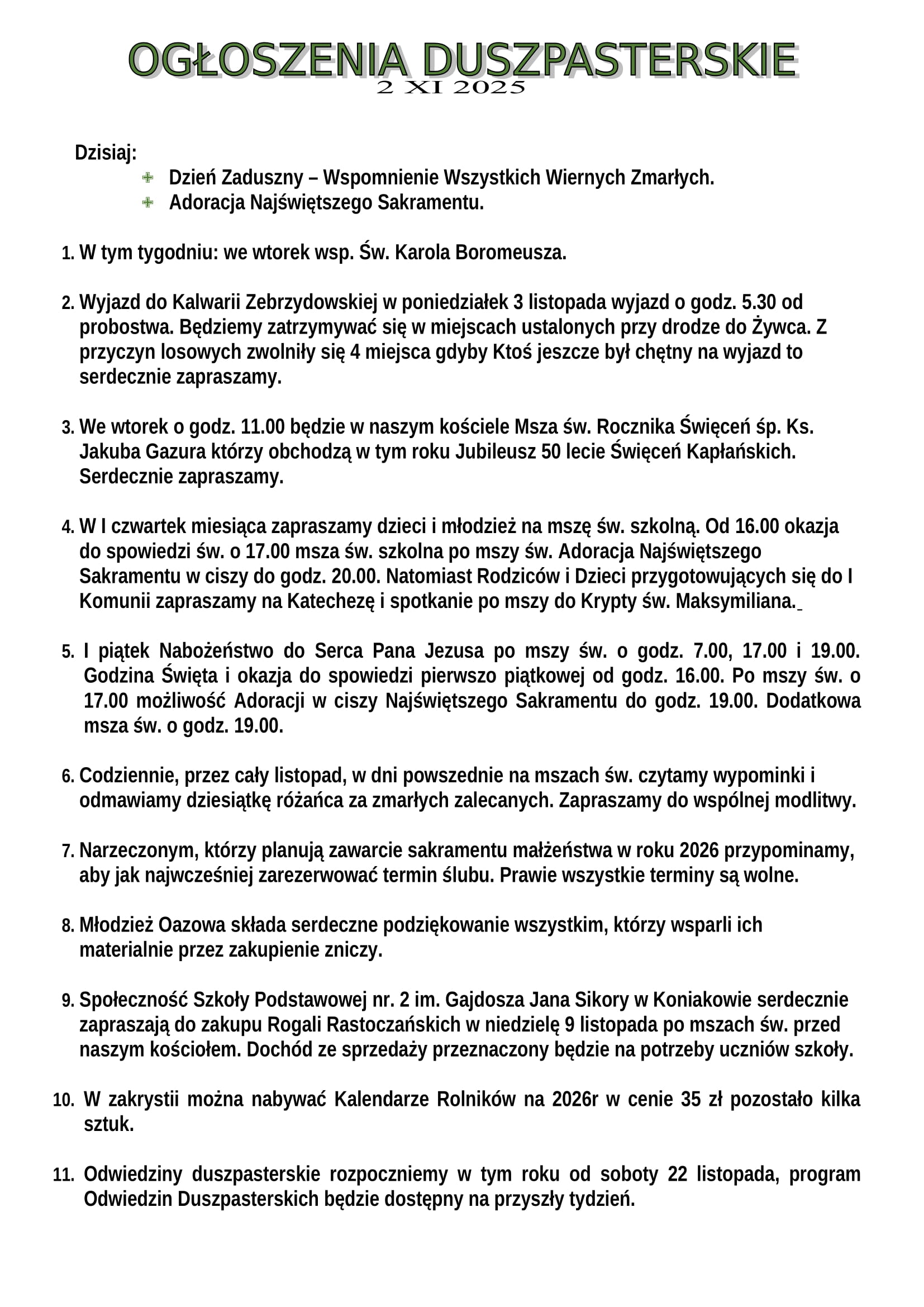 Ogłoszenia Duszpasterskie 02.11.2025