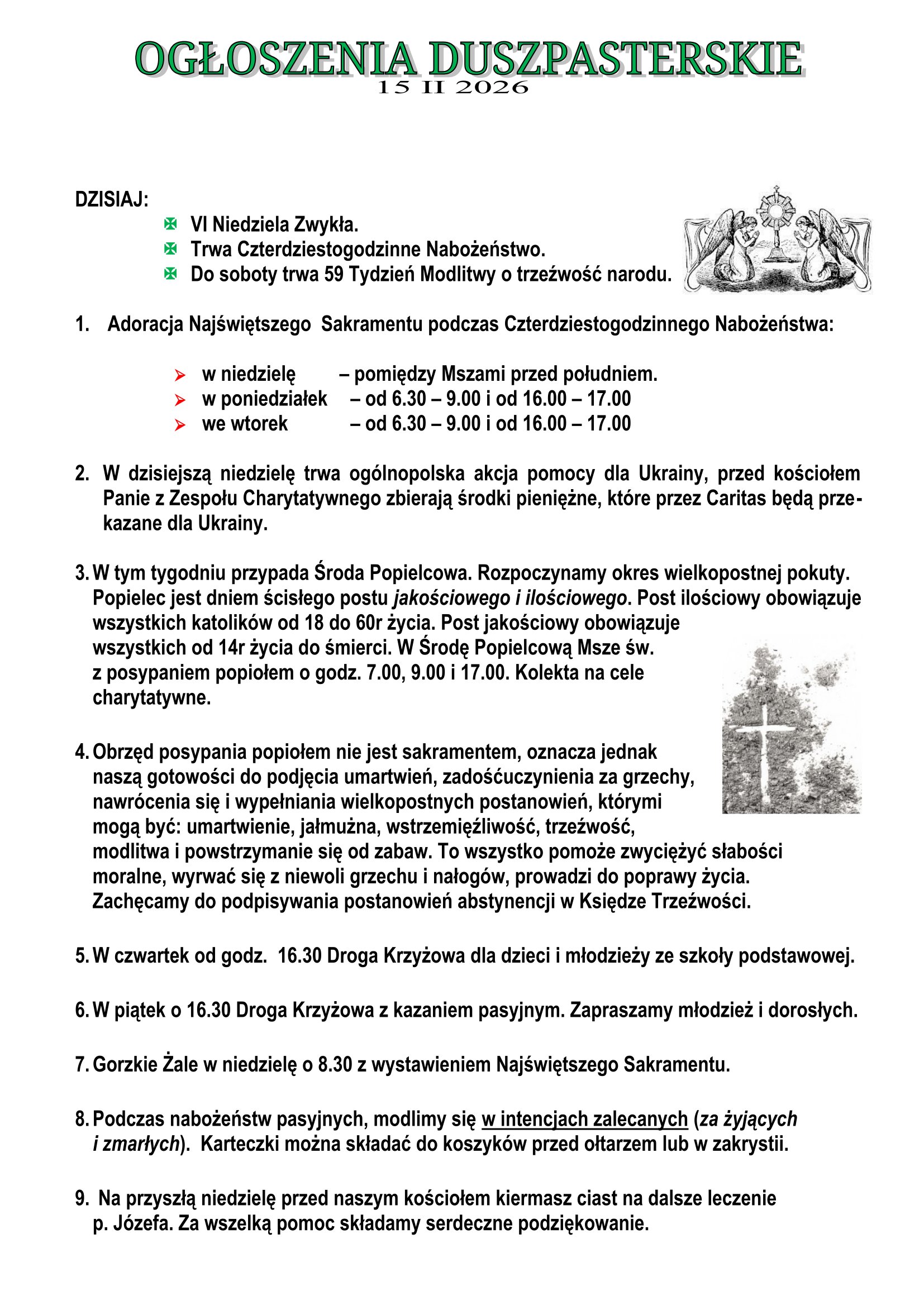 Ogłoszenia Duszpasterskie 15.02.2026