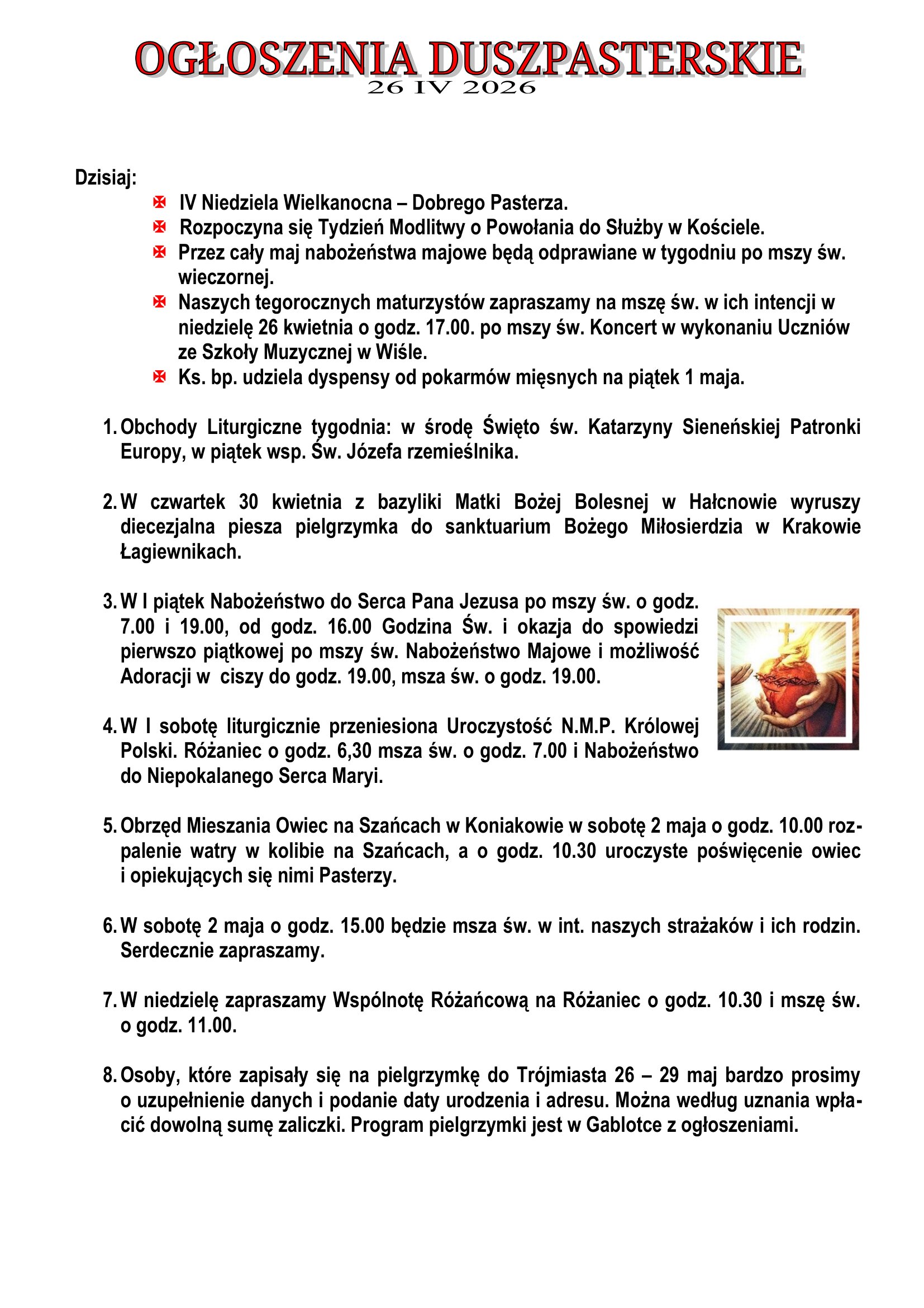 Ogłoszenia Duszpasterskie 26.04.2026